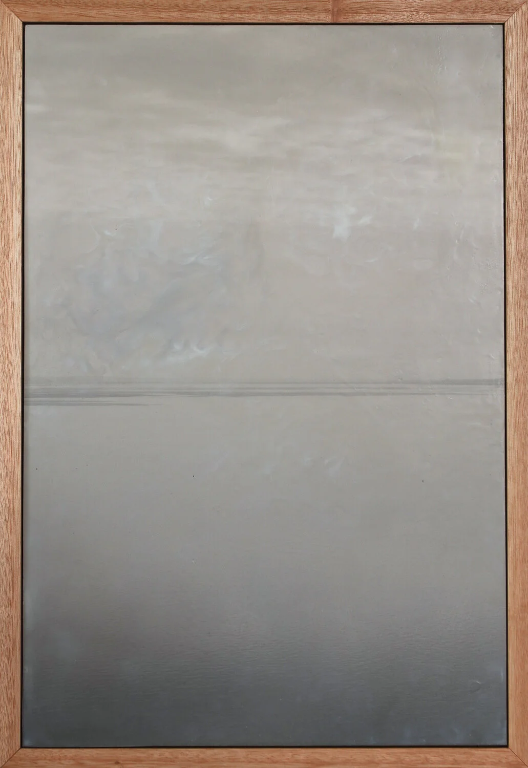 Mississippi Morning Fog, photo encaustic on panel, 2018. 26 x 18 in. Framed in custom Mississippi pecan frame.